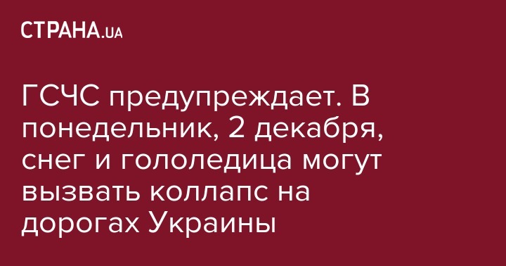 ГСЧС предупреждает. В понедельник, 2 декабря, снег и гололедица могут вызвать коллапс на дорогах Украины