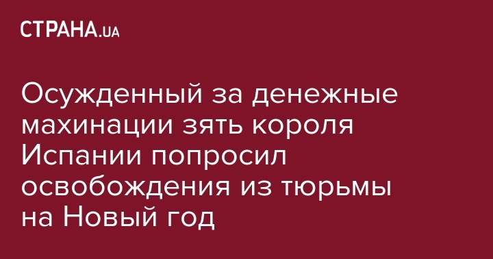 Сегодня, 1 декабря, Иньяки Урдангарин, зять испанского короля Филиппа VI, находящийся в тюрьме за уклонение от уплаты налогов и мошенничество в особо крупных размерах, попросил отпустить его на Новый год на свободу. Об этом пишет "Российская газета".