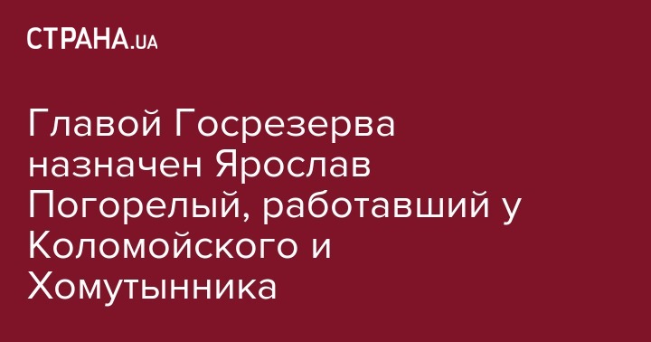 В Кабинете министров Украины утвердили назначение председателем Государственного агентства резерва Ярослава Погорелого. Согласно документу, он назначен на должность с 29 ноября сроком на пять лет с испытательным сроком три месяца.