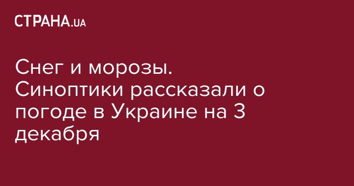 Снег и морозы. Синоптики рассказали о погоде в Украине на 3 декабря