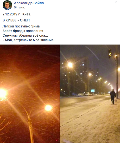 Также киевляне шутят о том, что снег пошел по расписанию и пишут такие посты: "Буду первым! Завтра в Киеве плохо убрали снег!"