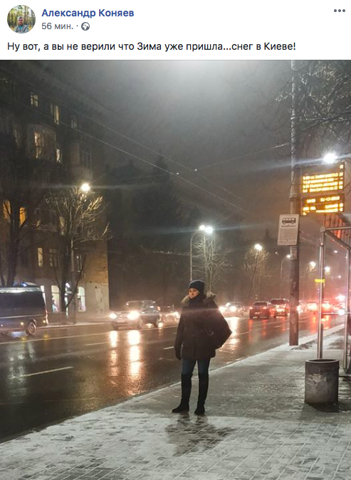 Александр Коняев сопроводил фото подписью: "Ну вот, а вы не верили, что зима уже пришла".