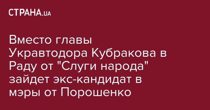 Вместо главы Укравтодора Кубракова в Раду от "Слуги народа" зайдет экс-кандидат в мэры от Порошенко
