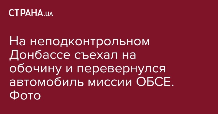 На неподконтрольном Донбассе съехал на обочину и перевернулся автомобиль миссии ОБСЕ. Фото