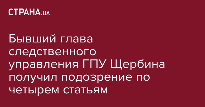 Сотрудники Национального антикоррупционного бюро Украины сообщили о подозрении бывшему начальнику Главного следственного управления Генеральной прокуратуры Украины Игорю Щербине, у которого недавно провели обыск. Об этом сообщается на сайте НАБУ.
