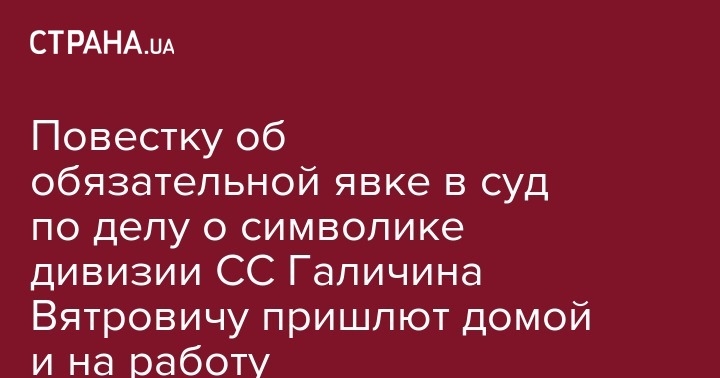 Повестку об обязательной явке в суд по делу о символике дивизии СС Галичина Вятровичу пришлют домой и на работу