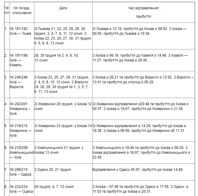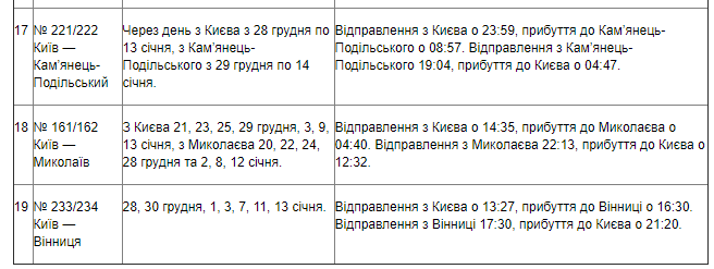 Укрзализныця обнародовала расписание 19 дополнительных поездов на Новый год