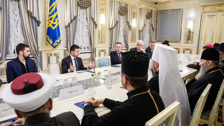 Зеленский поблагодарил присутствующих за совместное обращение иерархов к жителям временно оккупированных территорий, а также за их работу для украинцев. Затем он призвал поддержать мирные инициативы украинской стороны.
