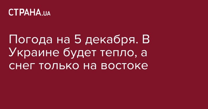 Погода в Украине в четверг, 5 декабря, будет сухой и солнечной. Снег возможен только в Харьковской и Луганской областях.