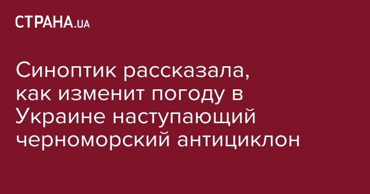 Синоптик рассказала, как изменит погоду в Украине наступающий черноморский антициклон
