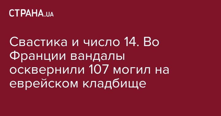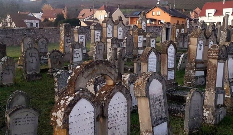 Во Франции произошел очередной вопиющий акт антисемитизма. Здесь в городке Вестхоффен, что находится на востоке Франции, под Страсбургом, на еврейском кладбище 107 могил обрисовали свастикой и числом "14".