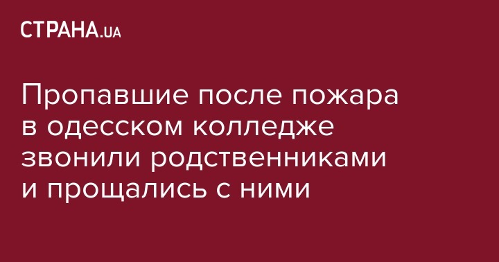 Среди 14 пропавших после пожара в одесском колледже - 4 студента. Некоторые из них звонили родственниками перед исчезновением и прощались с ними, потому что задыхались. Об этом сообщает издание "Думская".