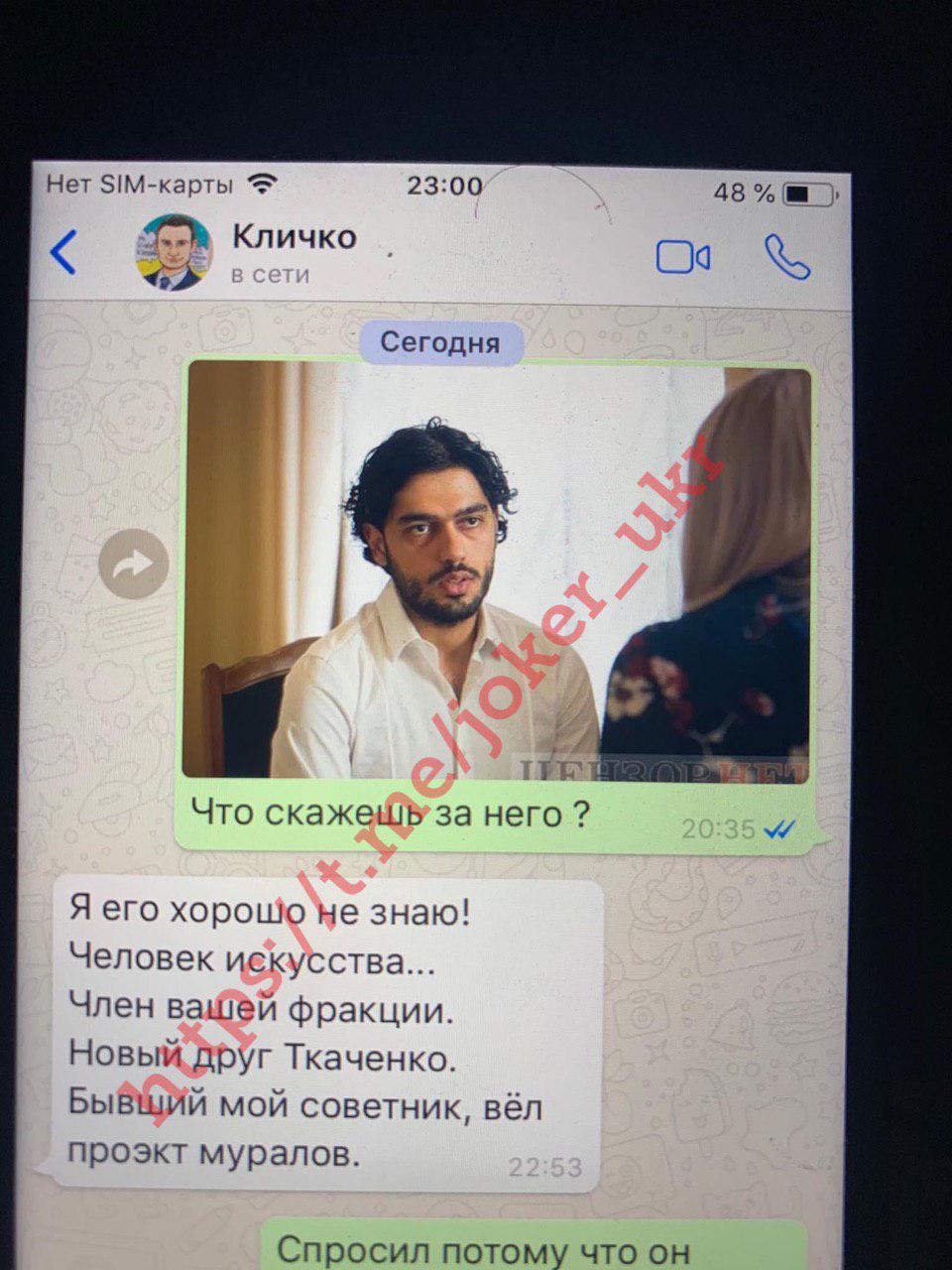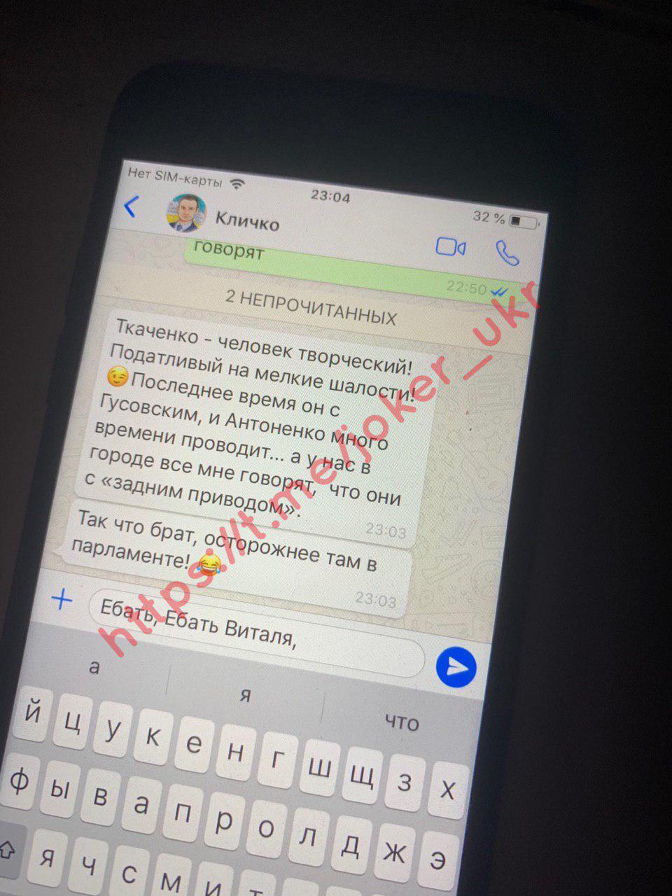 По его словам, во время переписки Кличко рассказал, что думает о Леросе, а также поделился мнением о народном депутате от Слуги народа Александре Ткаченко.