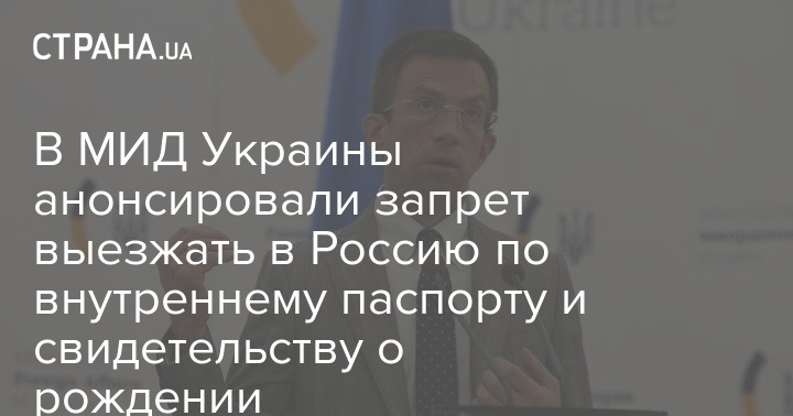 В МИД намерены представить на рассмотрение Кабмина Украины предложения об отмене возможности пересечения гражданами Украины границы с Россией по внутреннему паспорту и свидетельству о рождении. Об этом говорится в твиттер-микроблоге госсекретаря МИД Андрея Зайца в четверг, 5 декабря.
