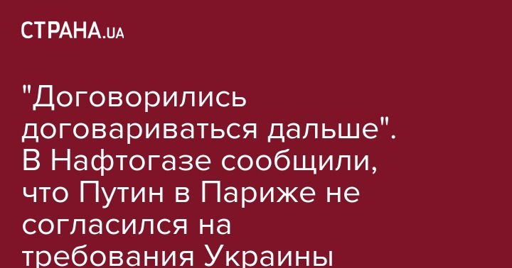 На переговорах по газу между Украиной и Россией, которые состоялись сегодня в Париже на уровне президентов, не были достигнуты договоренности, и переговоры будут продолжаться.