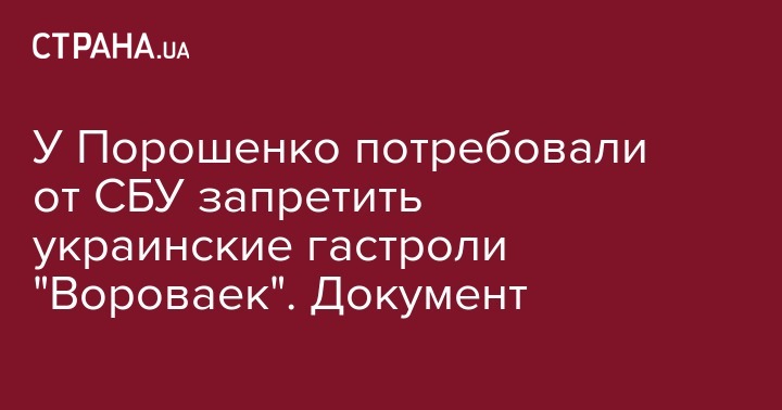 У Порошенко потребовали от СБУ запретить украинские гастроли "Вороваек". Документ