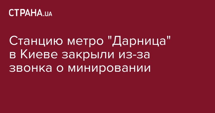 Станция киевского метрополитена "Дарница" закрыта в четверг вечером после полученного анонимного сообщения о минировании.