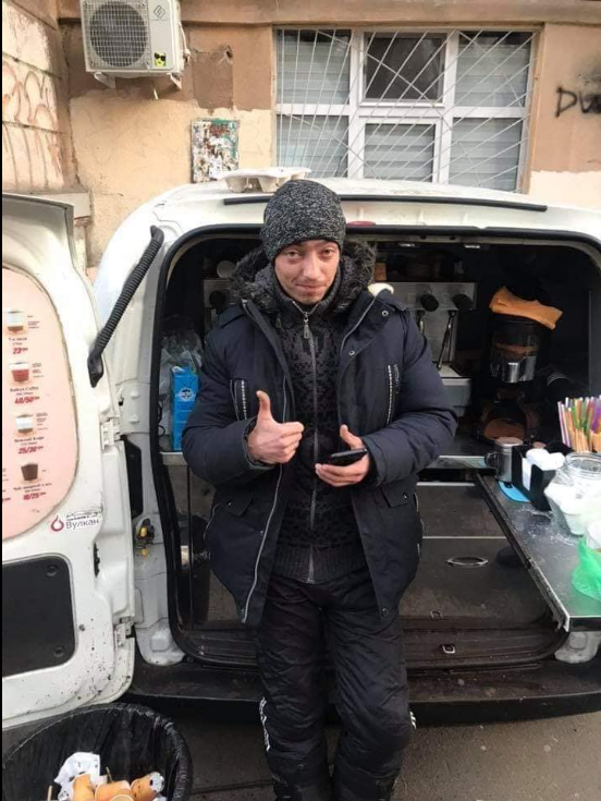 Один из комментаторов узнал парня с фургоном "Боря кофейник". Им оказался житель Одессы Анатолий Парфенов.