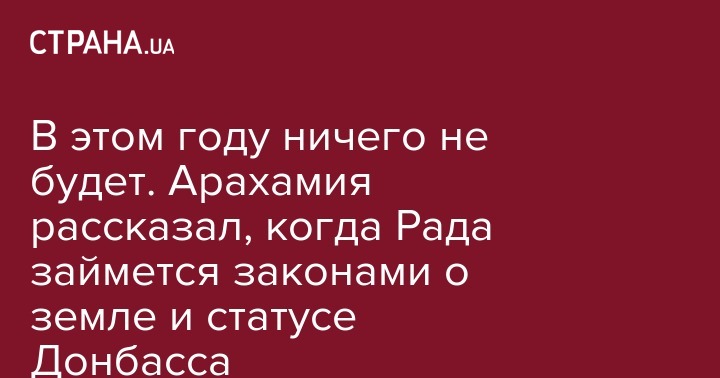 Глава парламентской фракции партии "Слуга народа" Давид Арахамия заявил, что Рада не успеет до конца года принять законы о рынке земли и о статусе Донбасса.