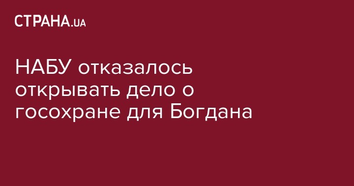 Национальное бюро расследований (НАБУ) отказалось открывать дело по факту предоставления государственной охраны руководителю Офиса президента Андрею Богдану. Об этом говорится в материалах суда, передают Украинские Новости.