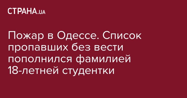 Пожар в Одессе. Список пропавших без вести пополнился фамилией 18-летней студентки