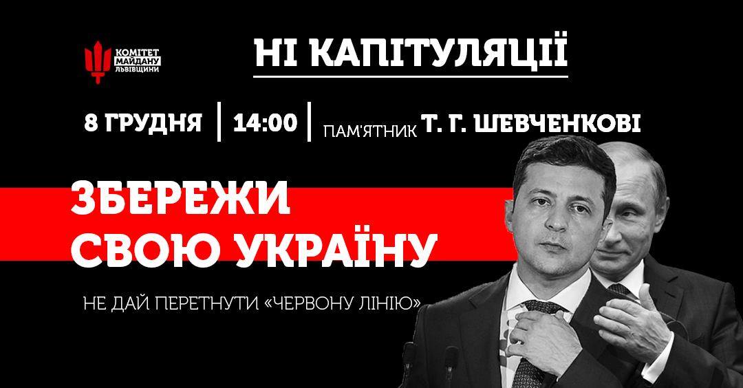 "Зеленский не объявляет, о чем он будет договариваться с Путиным в Париже. Учитывая количество красных линий, которые он уже пересек, мы крайне смущены возможными договоренностями. Нас не устраивает ни удовлетворение всех требований России с последующей попыткой имплементировать их в украинском конституционном поле, ни полный отказ от оккупированных территорий, ни другие варианты договоренностей, которые не учитывают национальные интересы Украины и ее граждан. 8 декабря все должны выйти и еще раз предупредить власть, что мы стоим на защите украинского государства", - заявили в Комитете майдана Львовщины.