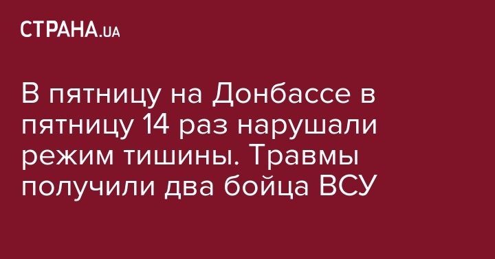 В пятницу на Донбассе в пятницу 14 раз нарушали режим тишины. Травмы получили два бойца ВСУ