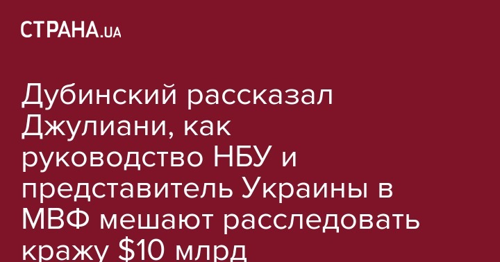 Дубинский рассказал Джулиани, как руководство НБУ и представитель Украины в МВФ мешают расследовать кражу $10 млрд