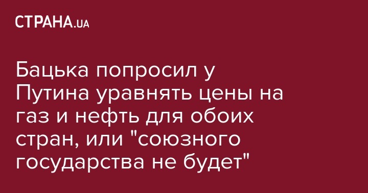 "Мы не просим, как некоторые говорят, дешевый газ, дешевую нефть (...). Если наши предприятия покупают за 200 долларов, значит и конкурирующие предприятия должны иметь такую же цену", - сказал он, добавив, что в противном случае основу Союзного государства создать не удастся.