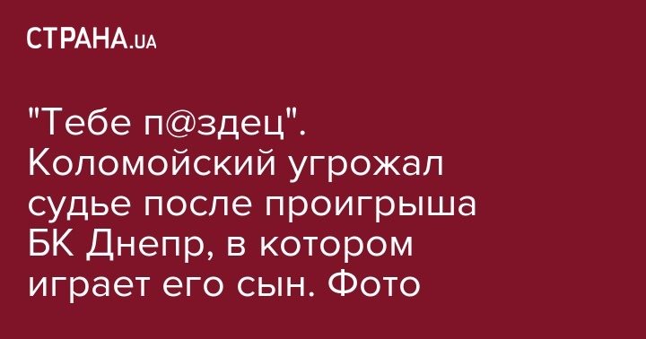 Андрей Бабык, судья матча между "Днепром" и "Киев-Баскетом" (1 декабря), после игры получил в свой адрес угрозы от троих человек: олигарха Игоря Коломойского, директора "Днепра" Валерия Кондратьева и вице-президента БК "Днепр" Валерия Гуляева.