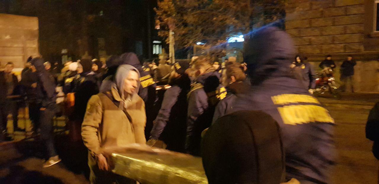 19:37  Видео, как "Нацкорпус" что-то разгружает на Банковой.