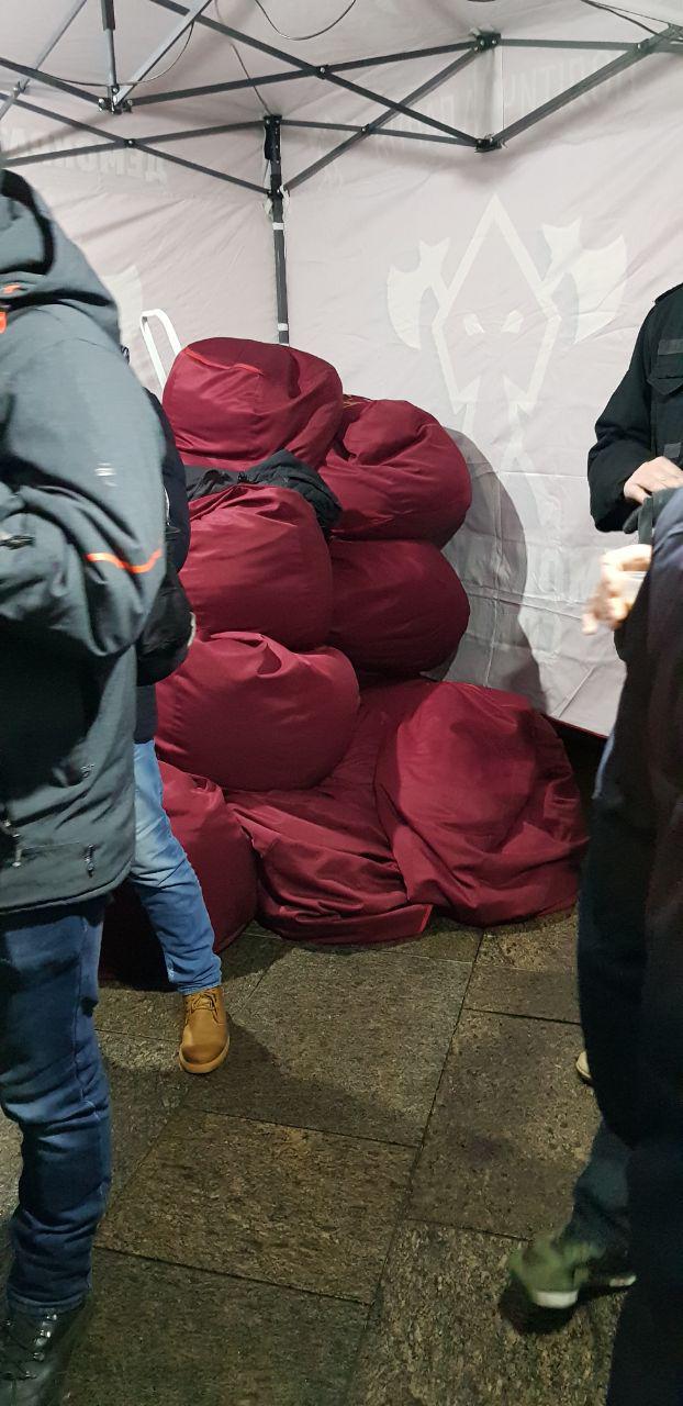 Участники акции собираются стоять с палатками до момента, когда станет известно о решениях "нормандской четверки". Поэтому они запаслись креслами-мешками, которые сложены в углу одной из палаток.