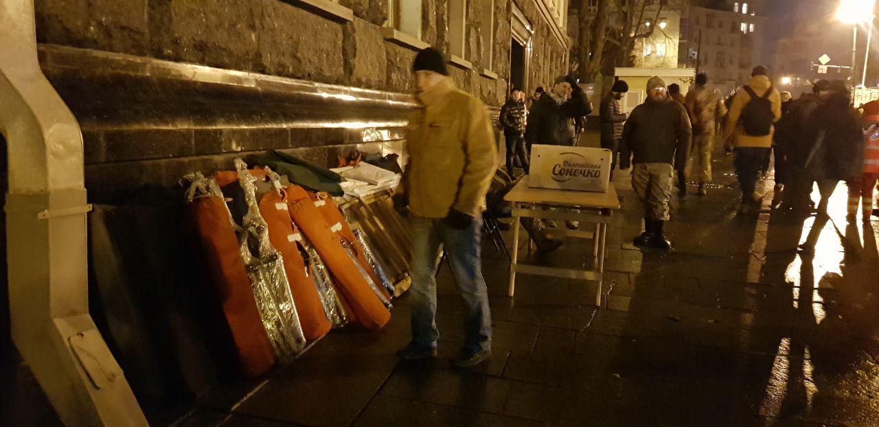 Под стенами ОП собраны спальники. Фото: Страна.ua