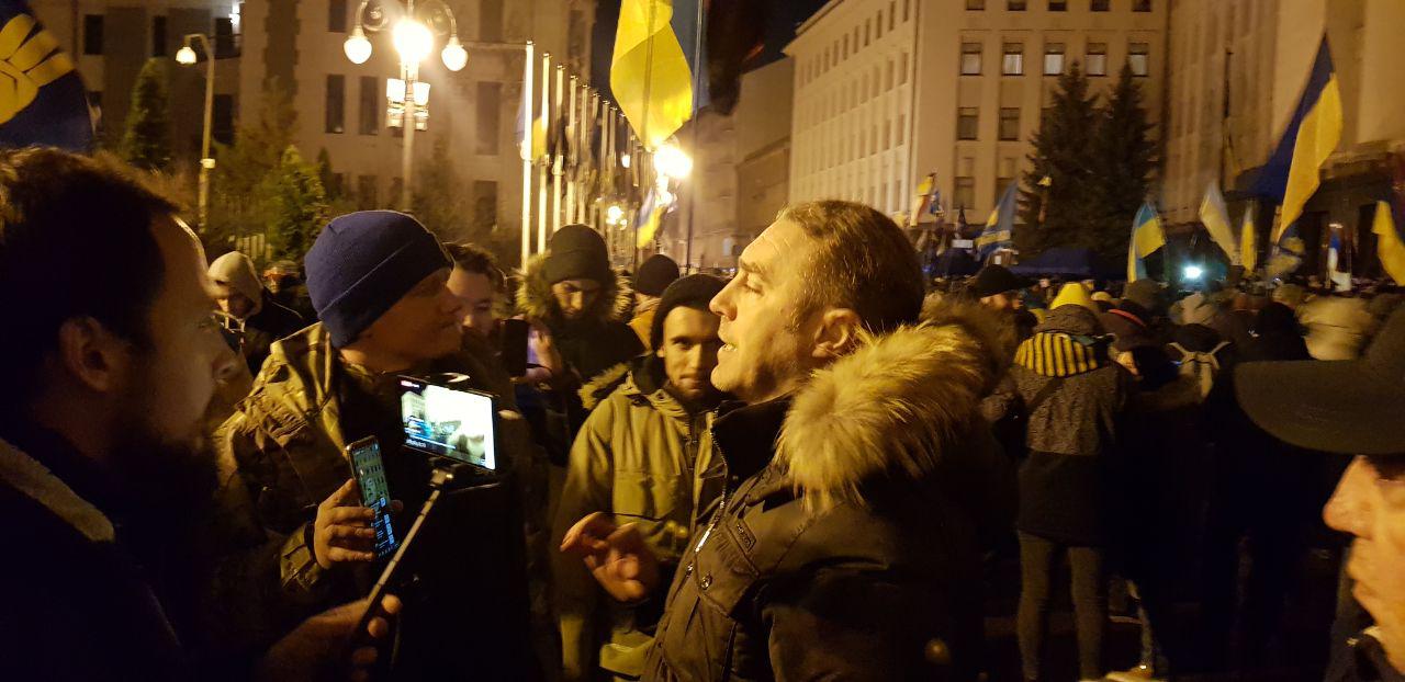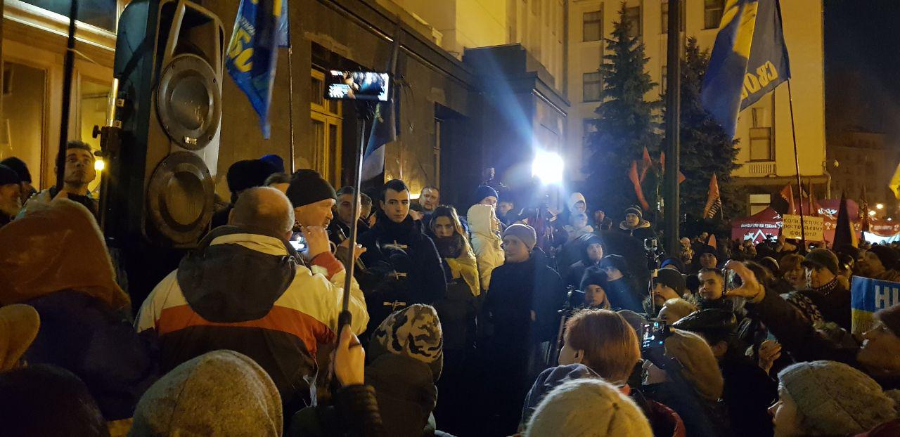 На Банковой сегодня вечером проходит вторая часть Порох-майдана. "Рух опору капітуляції" собирается стать с палатками под Офисом президента и дожидаться там решений Нормандской четверки.