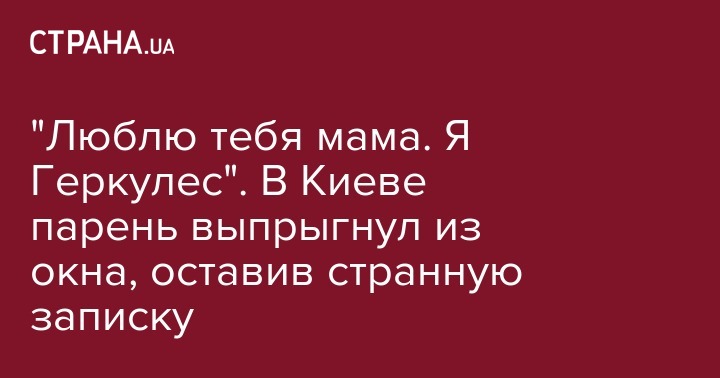 "Люблю тебя мама. Я Геркулес". В Киеве парень выпрыгнул из окна, оставив странную записку
