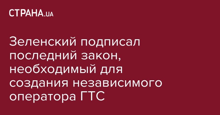 Президент Украины Владимир Зеленский подписал Закон "О внесении изменений в раздел ХХ "Переходные положения" Налогового кодекса Украины относительно создания условий для обеспечения выполнения обязательств Украины по отделению деятельности по транспортировке природного газа" № 314-их, который Верховная Рада приняла 3 декабря 2019 года. Об этом сообщается на сайте главы государства.