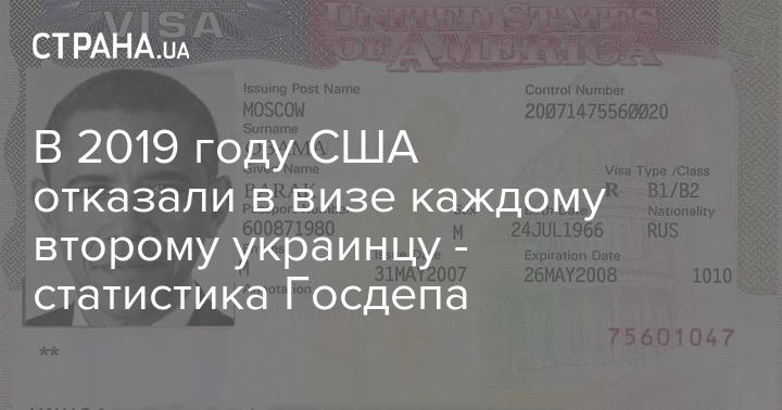 В 2019 финансовом году (закончился 30 сентября 2019 по календарю) власти США отказали во въезде почти каждому второму обращавшемуся гражданину Украины. Доля отказа в гостевых визах (B-visa) для поездок в США гражданам Украины составляет 45,06%.