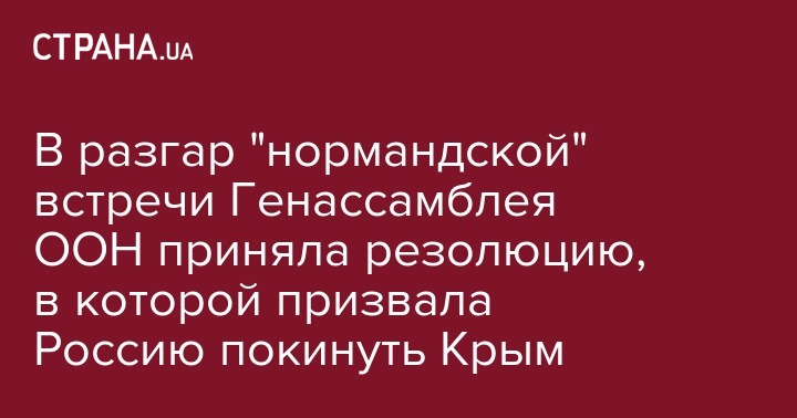 В разгар "нормандской" встречи Генассамблея ООН приняла резолюцию, в которой призвала Россию покинуть Крым