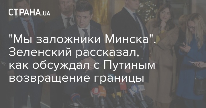 "Для Украины граница - это вопрос безопасности, для России - политики. Мы заложники Минска, но я сказал ему (Путину - Ред.), что мы на это не пойдем, а он - что не видит другого выхода. Но мы потом начали говорить об этом и договорились, что надо поговорить", - сказал Владимир Зеленский.