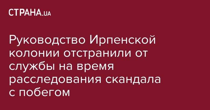 Начальник и замначальника Ирпенского исправительного центра, откуда сбежал сотрудник, сегодня были отстранены от исполнения своих обязанностей на время проведения служебного расследования. Об этом сообщили в Государственной пенитенциарной службе Украины.