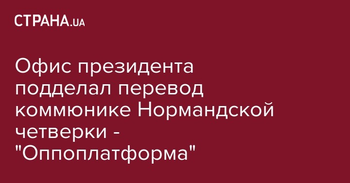 "Таким образом, Офис президента сфальсифицировал в переводе коммюнике по итогам встречи в Париже важнейший аспект договоренностей глав государств ‒ участников "нормандского формата" и фактически обманывает украинское общество, говоря об истинной сути достигнутых договоренностей. Требуем немедленно исправить официальный перевод коммюнике и наказать виновных в его фальсификации", - заявляют в "Оппоплатформе".