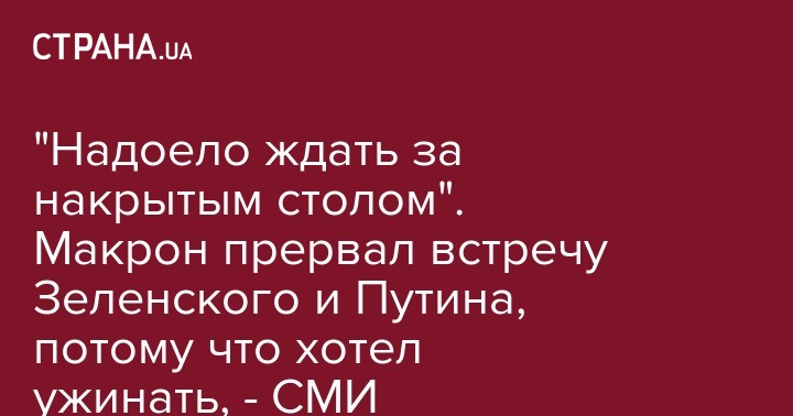 Двустороннюю встречу лидеров Украины и России,  проходившую в рамках "Нормандского саммита", прервал президент Франции Эммануэль Макрон, который попросту устал ждать ужин. Об этом пишет "Коммерсант", ссылаясь на источник среди участников нормандской встречи.