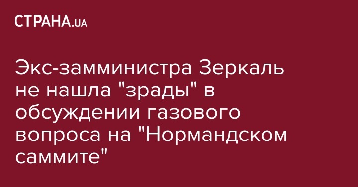 Обсуждение Украиной и Россией газового вопроса на "Нормандском саммите" прошло "без зрады" и это позитивный итог встречи. Такое мнение высказала экс-замминистра иностранных дел Украины по вопросам европейской интеграции Елена Зеркаль в эфире телеканал "Прямой", передает "Интерфакс-Украина".