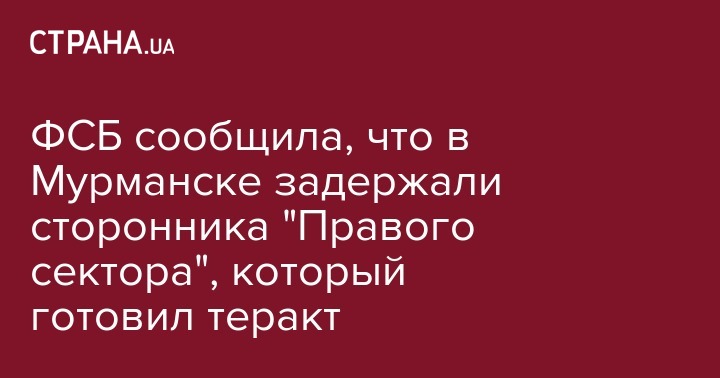 ФСБ сообщила, что в Мурманске задержали сторонника "Правого сектора", который готовил теракт