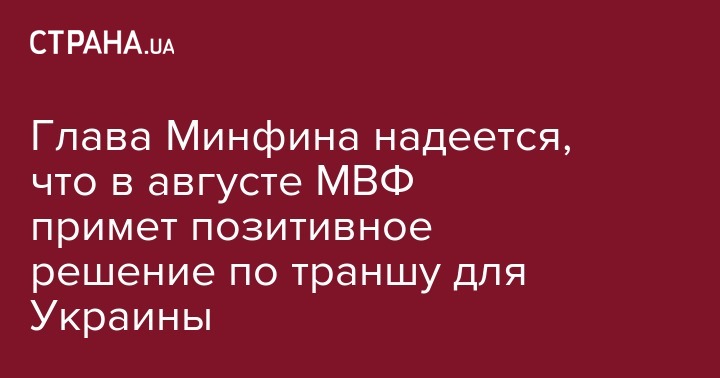 Глава Минфина надеется, что в августе МВФ примет позитивное решение по траншу для Украины