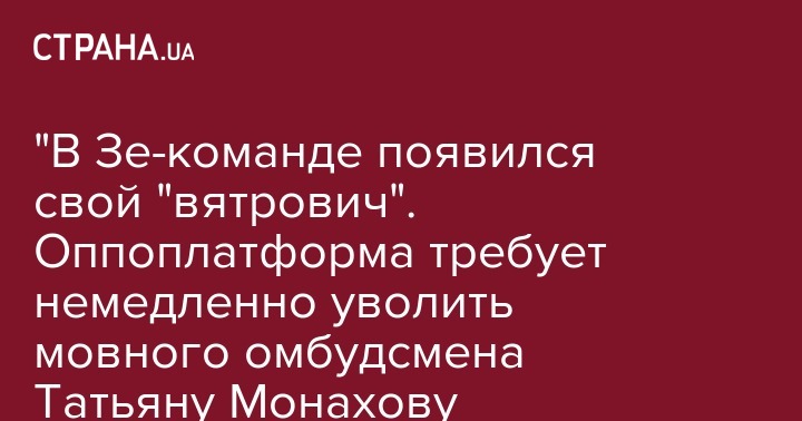 "В Зе-команде появился свой "вятрович". Оппоплатформа требует немедленно уволить мовного омбудсмена Татьяну Монахову