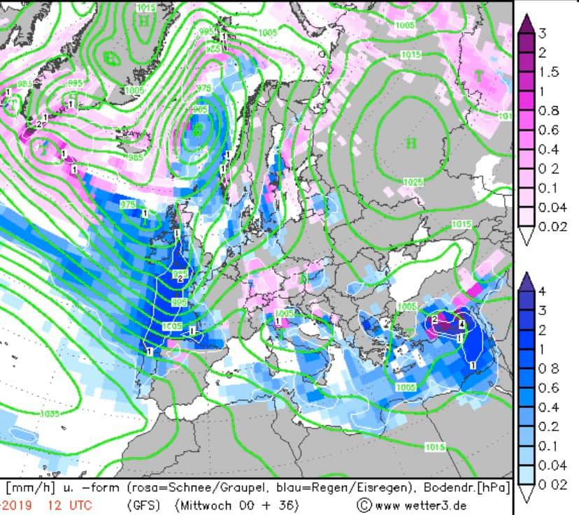 "Пока большинство стран Европы наблюдают за сильными дождями - синий цвет, снегами - розовый цвет, убегают от штормовых ветров, Украина и дальше находится с антициклоном. А потому завтра у нас - преимущественно сухо. Температура воздуха ночью от небольшого минуса до маленького плюса, днем +2+5 градусов, на Юге до +6+9 градусов", - говорится в прогнозе.