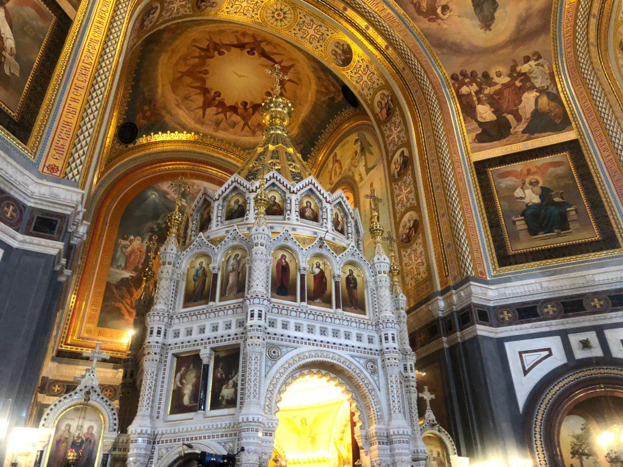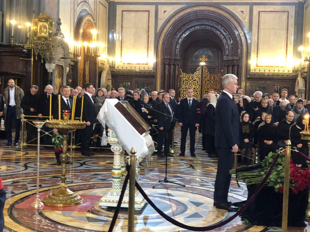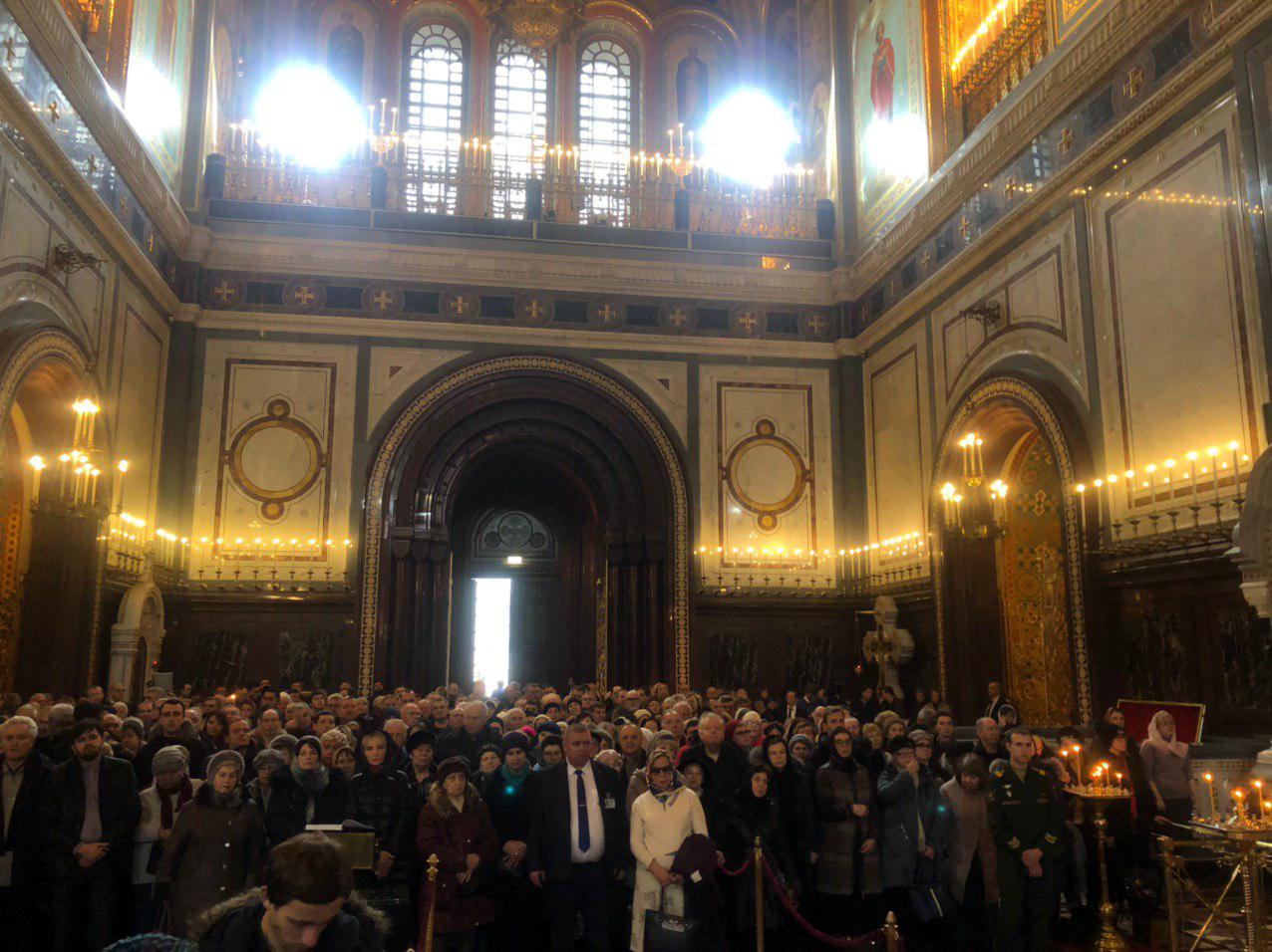 Церемония проходила в главном соборе России - Храме Христа Спасителя, который возвели при правлении Лужкова по его инициативе. Прощание началась в 7 утра по московскому времени и продолжится до 14:00. Столь раннее время объясняют тем, чтобы москвичи успели заехать в храм до начала работы.