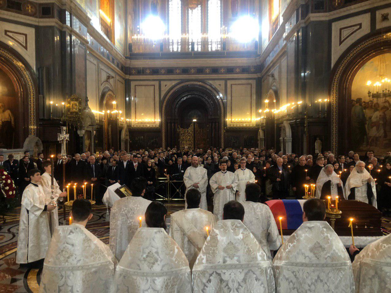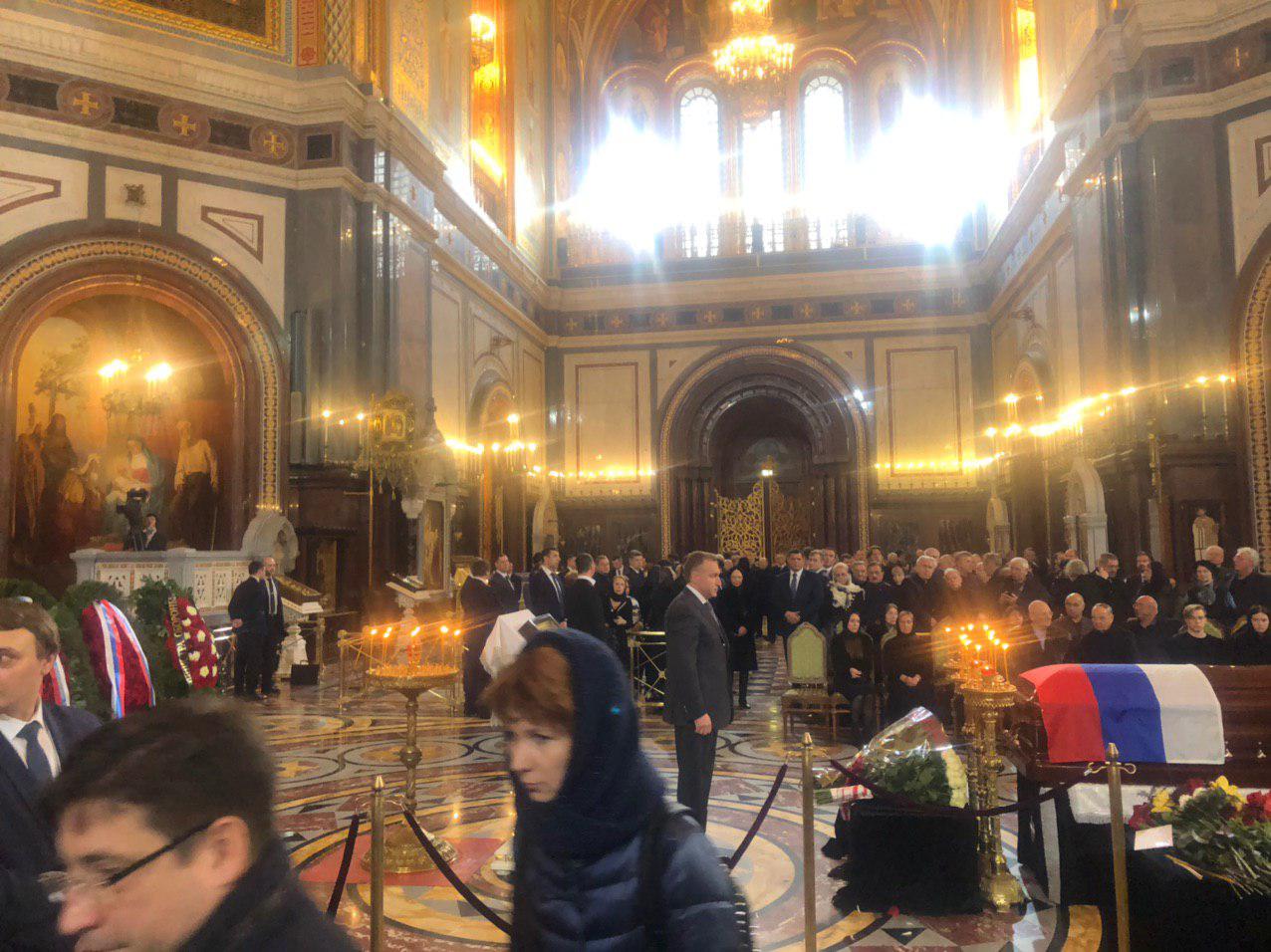 10:17 Патриарх Кирилл начал отпевание. Оно может продлиться несколько часов. Президент России Владимир Путин на этот момент не приезжал.