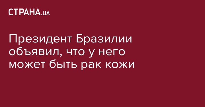 Президент Бразилии Жаир Болсонару, занявший пост главы государства после выборов в прошлом году, заявил, что у него, возможно, рак кожи. Об этом сообщает международное агентство новостей Reuters.